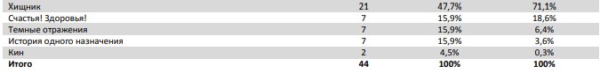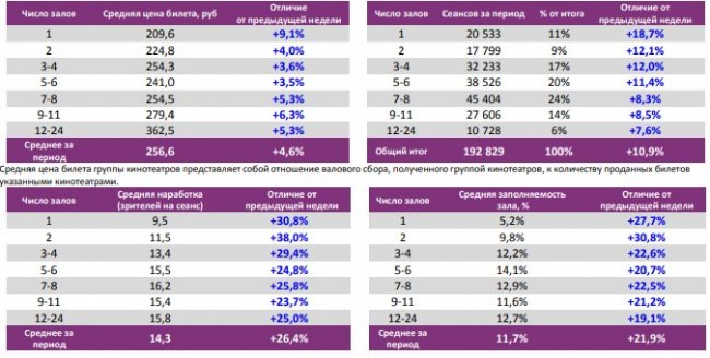 Средняя наработка на сеанс составила 14 зрителей.