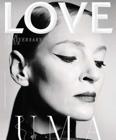 Для нового номера LOVE Magazine осень-зима 2018, посвященного 10-летнему юбилею глянца, в достаточно смелой фотосессии снялась Ума Турман – 48-летняя актриса не постеснялась примерить несколько ансамблей с весьма внушительным декольте.