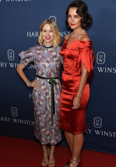 Кэти Холмс выбрала для вечера элегантное шелковое коктейльное платье от Zac Posen, а Наоми – более романтичный наряд от Erdem, дополнив его сумочкой Juditch Leiber и туфлями Jimmy Choo. Разумеется, все звезды из уважения к организатору вечера надели украшения Harry Winston.