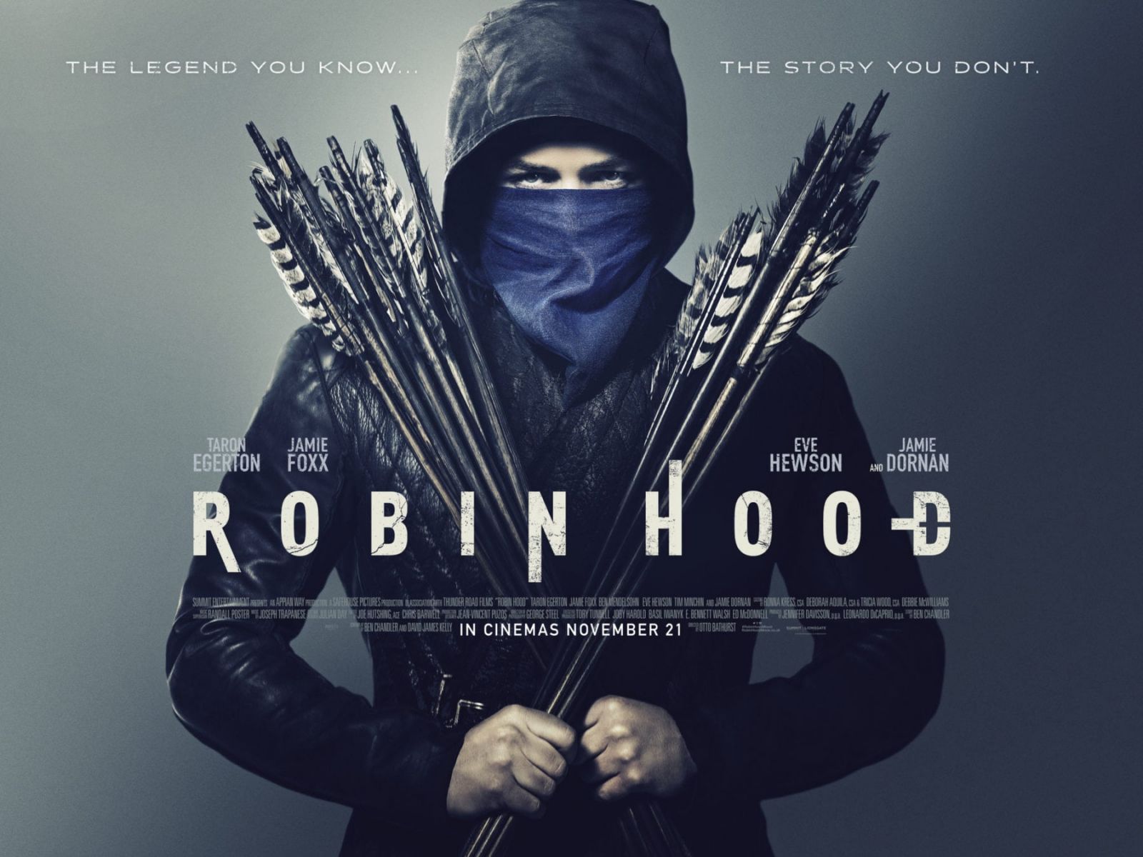 Lionsgate выпустили третий трейлер и свежий плакат приключенческого экшена «Робин Гуд: Начало» с участием Тэрона Эджертона в образе заглавного героя. Релиз картины от режиссёра Отто Бафёрста ожидается в конце ноября. «Робин Гуд: Начало» описывается как аналог трилогии о Тёмном Рыцаре Кристофера Нолана, представляющий новый взгляд на историю знаменитого средневекового персонажа. По сюжету, вернувшийся из Крестовых походов Робин Гуд (Эджертон) обнаруживает, что в его родном Шервудском лесу царят коррупция и порок. Собрав банду из преступников и конченых негодяев, герой решает собственноручно исправить положение, не забывая также и о безудержном веселье. Джейми Фокс появится в роли Малыша Джона, Джейми Дорнан сыграл Уилла Скарлета, одного из участников шайки Весёлых Разбойников и по совместительству мужа Девы Мэриан (Ив Хьюсон). Образ центрального антагониста - шерифа Ноттингема – воплощает Бен Мендельсон. Также в каст входят Пол Андерсон (Гай Гисборн), Тим Минчин (монах Тук), Иэн Пек, Бьорн Бенгтссон, Джош Хердман, Юн Лай и Нассер Мемарциа. Автором сценария выступил Джоби Хэролд, работавший над переосмыслением истории другого легендарного героя английских баллад – «Меча короля Артура» Гая Ричи. В качестве одного из продюсеров значится Леонардо ДиКаприо. В российском прокате фильм стартует 29 ноября. Тэрон Эджертон на съёмках байопика об Элтоне Джоне02.09.2018 Тэрон Эджертон в образе Элтона Джона на съёмках «Человека-ракеты»22.08.2018 Тэрон Эджертон в роли Элтона Джона на съёмках «Человека-ракеты»11.08.2018 Новый кадр из «Робин Гуда: Начало» с Тэроном Эджертоном27.07.2018 Звезда «Мира Юрского периода» сыграет маму Элтона Джона.