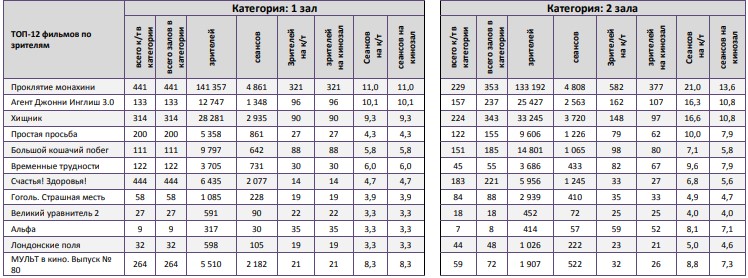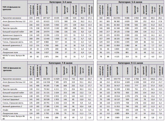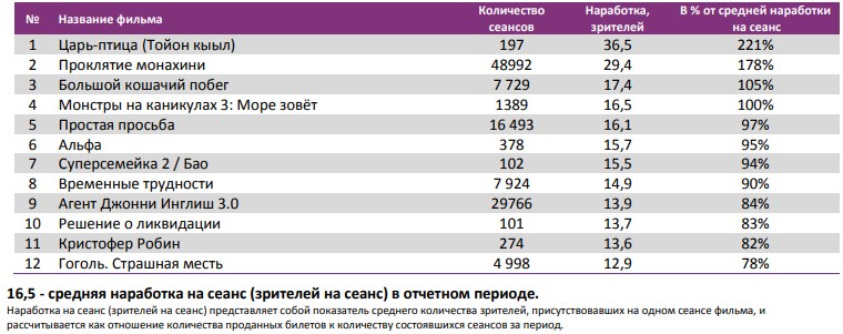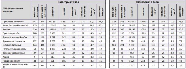 ТОП-12 фильмов по наработке на сеанс