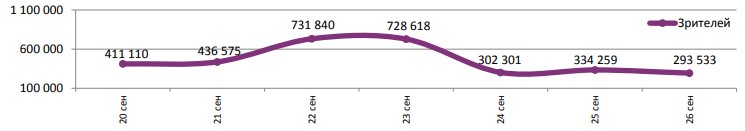 Средняя наработка на сеанс составила 17 зрителей.