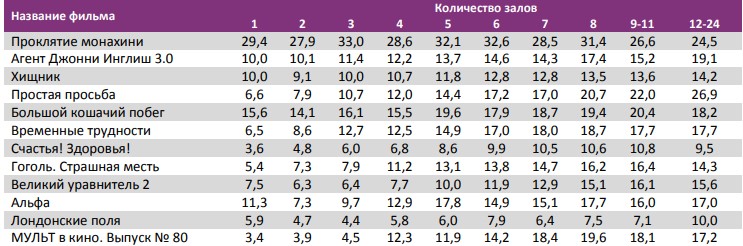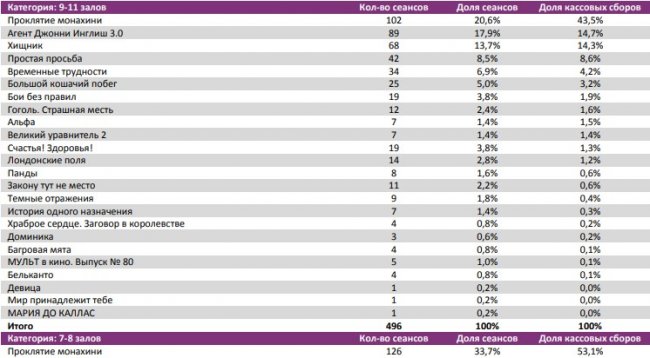 «Монахиня» стала лидером во всех самых успешных кинотеатрах недели, показав долю сборов 31- 70%.