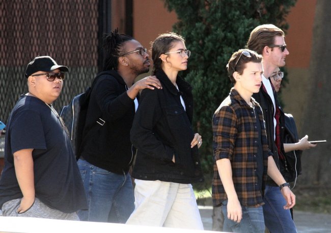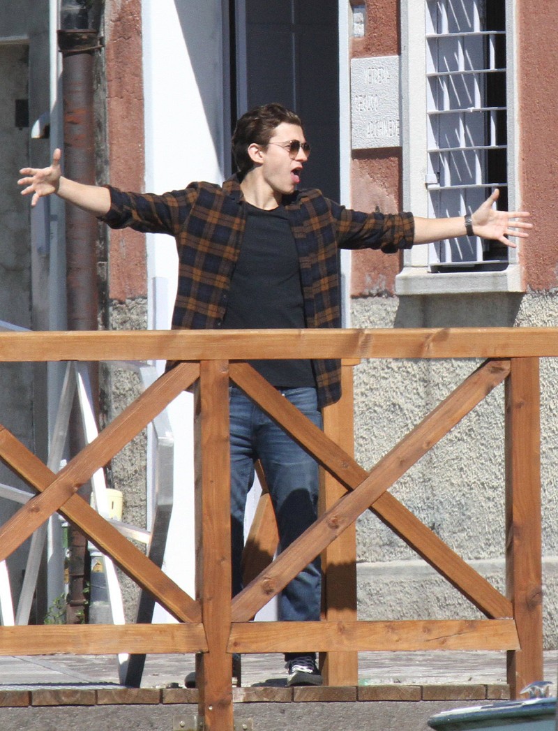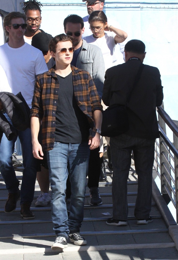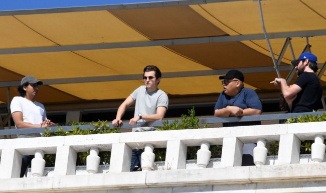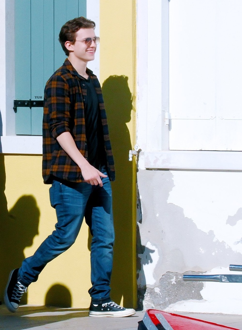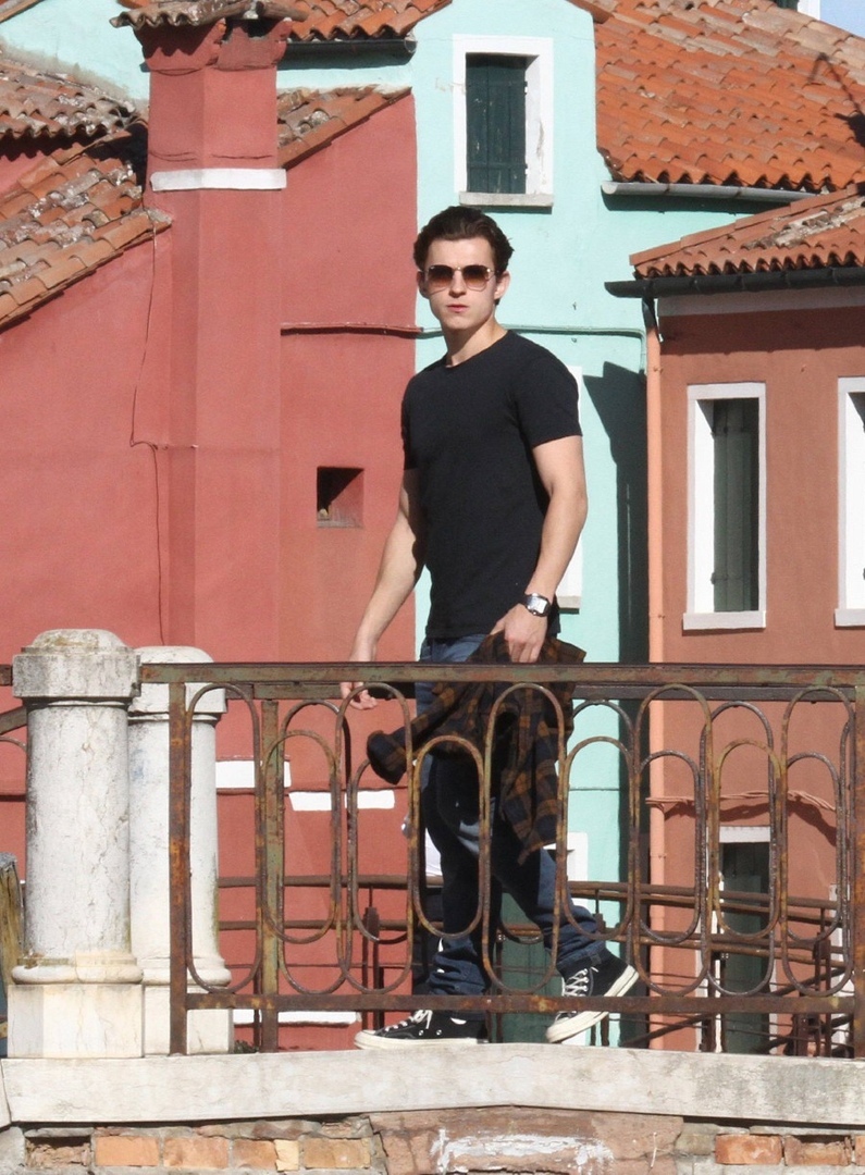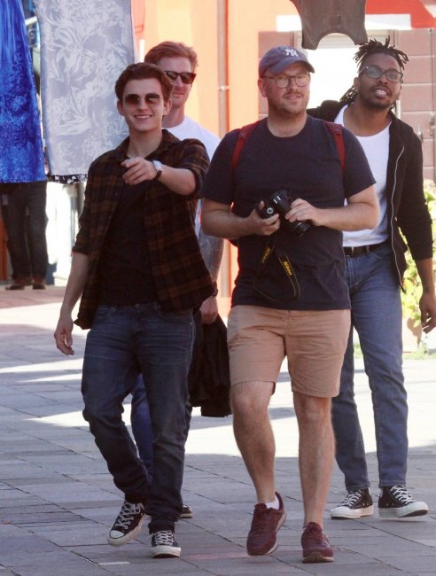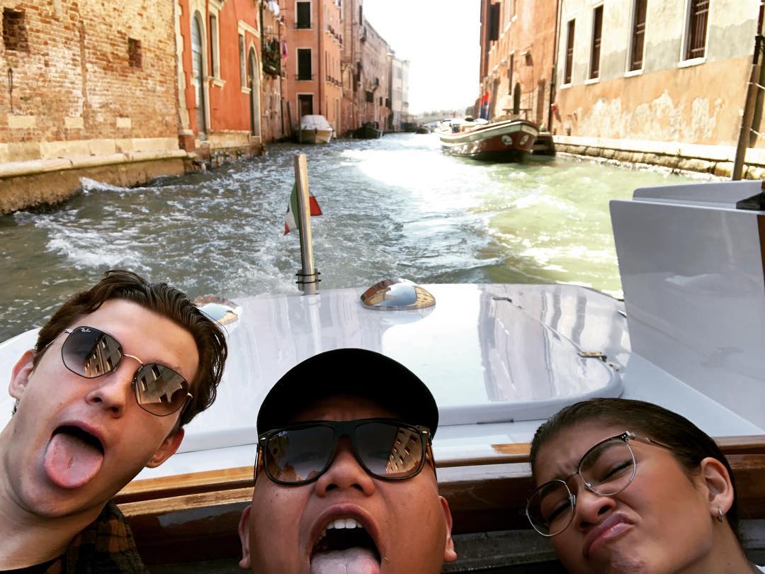 Том Холлэнд, Джейкоб Баталон и Зендая Коулман на съёмках супергеройского блокбастера «Человек-паук: Вдали от дома», проходящих в Венеции. В широком прокате фильм окажется 5 июля 2019 года.