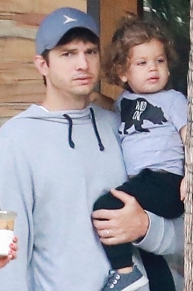 Эштон же выбрал синие джинсы, кроссовки, кепку и голубую худи. Практически повторил образ отца и Димитрий, которого актер нес на руках. Выглядело все это невероятно нежно и трогательно.