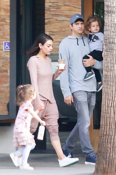 За последние несколько дней папарацци уже не в первый раз удалось запечатлеть 35-летнюю Милу Кунис и 40-летнего Эштона Катчера с детьми (а ведь в полном составе заснять это семейство удается не так уж и часто). Вот и вчера звездная чета с дочерью Уайетт (кстати, сегодня ей исполняется четыре года!) и почти двухлетним сыном Димитрием попала под прицелы фотографов.