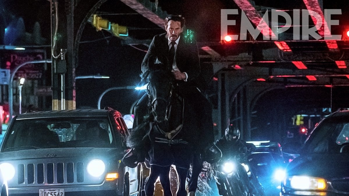 Опубликован свежий кадр из боевика «Джон Уик 3: Парабеллум» с Киану Ривзом, оседлавшим бравого скакуна. Премьера третьего фильма о приключениях принципиального киллера намечена на 17 мая 2019 года.