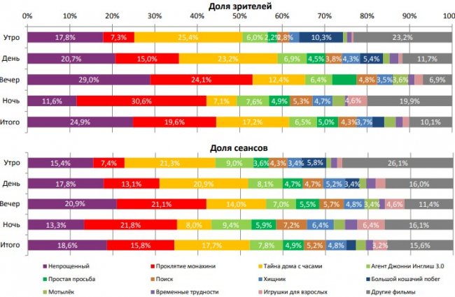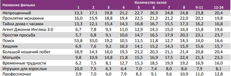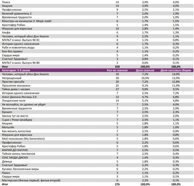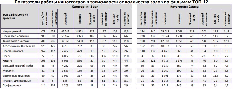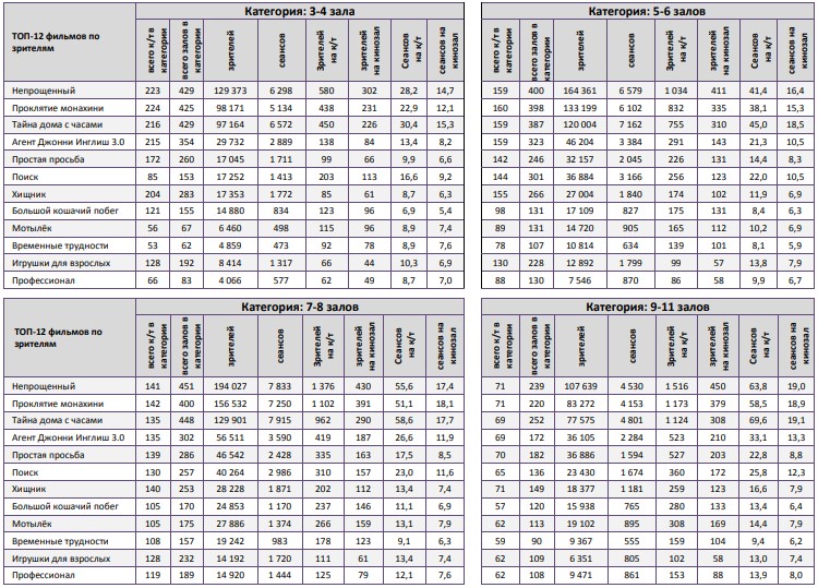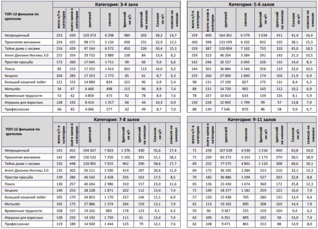 Независимые новинки «Игрушки для взрослых» и «Профессионал» привлекали менее 13 зрителей на сеанс.