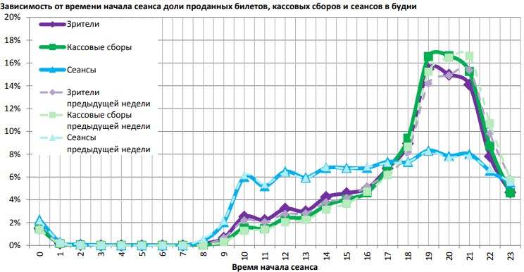 Статистика Фонда кино отражает информацию об основных результатах проката, лидерах недели по сборам и наработке на сеанс, показателях работы кинотеатров, эффективности репертуарного планирования, а также о соотношении долей по сборам, зрителям и сеансам в рамках данного периода.