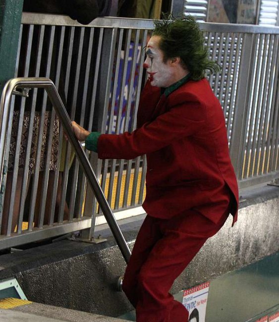В Сеть просочилась порция свежих фото со съёмочной площадки кинокомикса «Джокер» с Хоакином Фениксом в образе титульного персонажа. Режиссёрское кресло занимает создатель трилогии «Мальчишник в Вегасе» Тодд Филлипс.