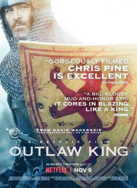 Netflix опубликовали первый постер исторического эпика «Король вне закона» с участием Криса Пайна в образе шотландского монарха Роберта I. Режиссёром картины выступил Дэвид Маккензи («Любой ценой», «От звонка до звонка»).