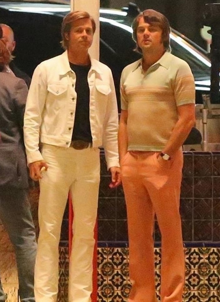 В Сеть просочились свежие фото со съёмок фильма Квентина Тарантино «Однажды в Голливуде» с участием Брэда Питта и Леонардо ДиКаприо в ретро-парике. Премьера картины намечена на 26 июля следующего года.