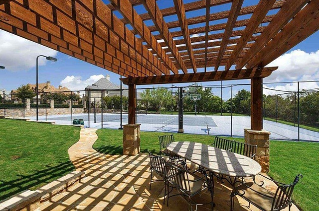 На заднем дворе особняка есть бассейн, гольф-поле, баскетбольная площадка и зона для барбекю.Кроме того, на территории есть гостевой домик и личный спа-салон. Отметим, что у Селены есть два дома в Лос-Анджелесе.