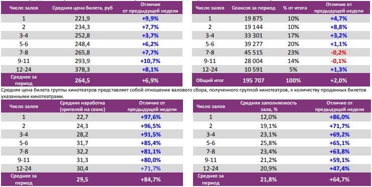 Средняя наработка на сеанс возросла почти в два раза и составила 30 зрителей.