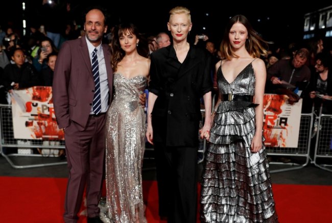 Вчера в Лондоне знаменитая актриса посетила премьеру фильма "Суспирия" и вышла на дорожку в достаточно откровенном серебристом платье с глубоким декольте от бренда Gucci. Выглядела Джонсон стройной и красивой - ни намека на округлившийся живот.