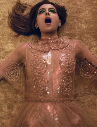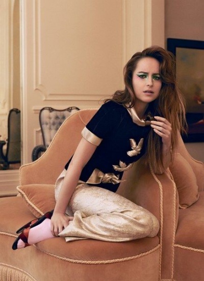 "Для меня модные съемки очень сложные. У меня они не получаются. Я люблю одежду, люблю моду. Но позирование - это не мое. Мне некомфортно. Однако эти съемки были другие, потому что это больше о характере. Мы снимали в невероятном доме в Верхнем Уэст-Сайде - это было великолепно, и мы создали эту историю пойманной в ловушку домохозяйки, которая полностью теряет рассудок. На мне была одежда от кутюр, макияж был сумасшедшим, поэтому было весело делать что-то дикое", - говорит Джонсон.