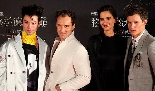 Китай в последние несколько лет дает голливудским блокбастерам почти столько же прибыли, сколько американский прокат, так что не удивительно, что именно в столице Поднебесной в первую очередь высадился «звездный десант» в составе Эдди Редмэйна, Кэтрин Уотерстоун, Эзры Миллера и Джуда Лоу. Главный возмутитель спокойствия в умах фанатов, Джонни Депп, до Пекина не добрался.