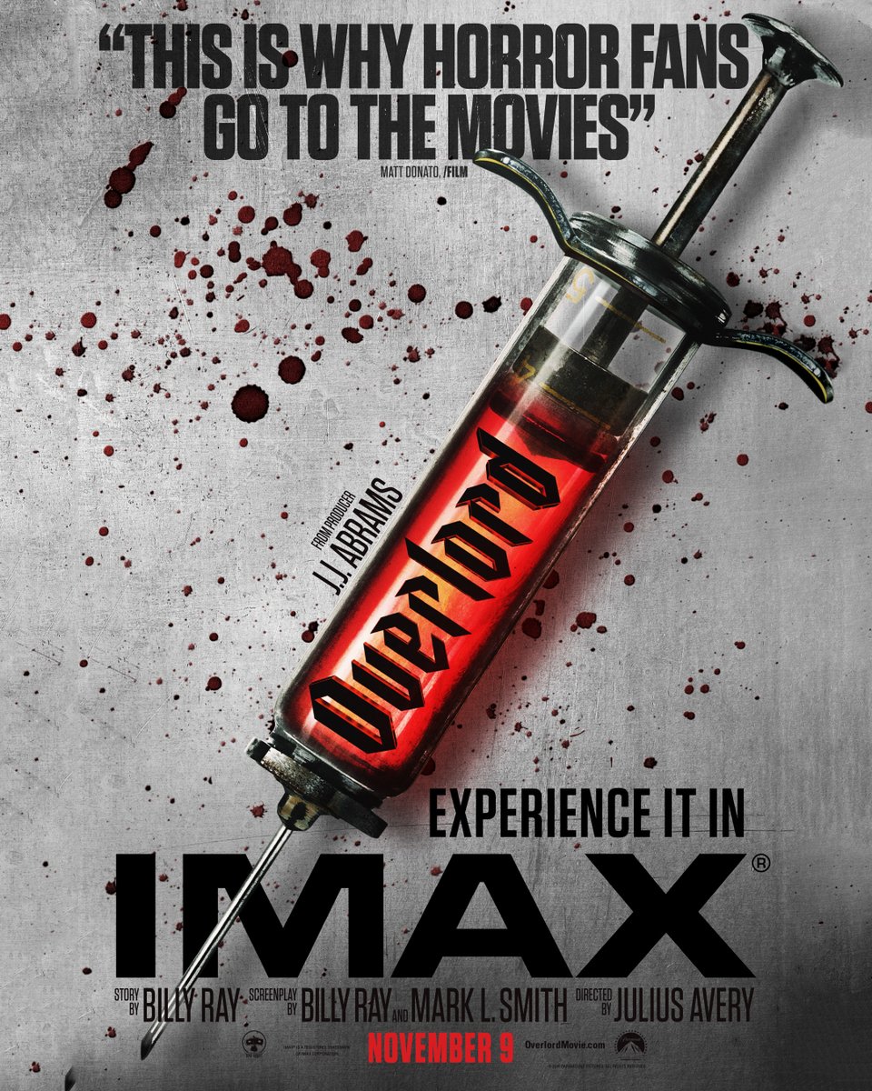 Опубликован эксклюзивный IMAX-постер военного зомби-хоррора «Оверлорд», продюсером которого выступил Джей Джей Абрамс. Фильм стал первым проектом производства Bad Robot, заточенным под суровый рейтинг R.