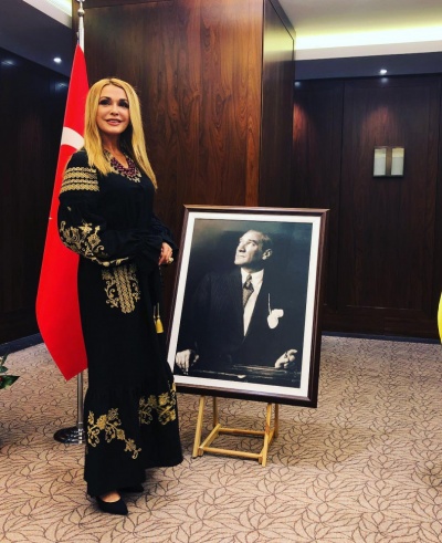 Так, на днях Сумская посетила прием, посвященный 95-летию провозглашения Республики Турция. Для выхода в свет Ольга выбрала черную вышиванку в пол с желтыми рисунками и выглядела в ней просто роскошно.