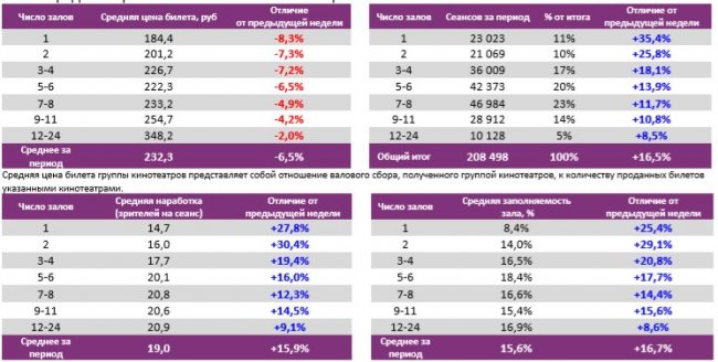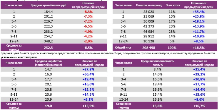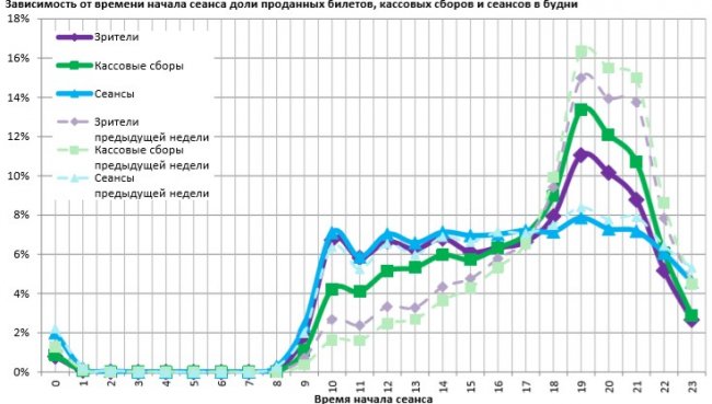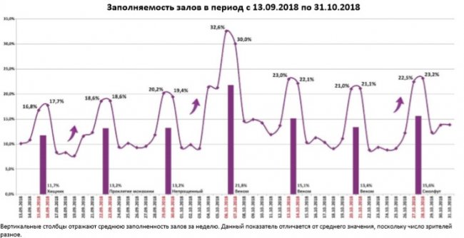 Средняя заполняемость залов резко выросла в будни благодаря каникулам.