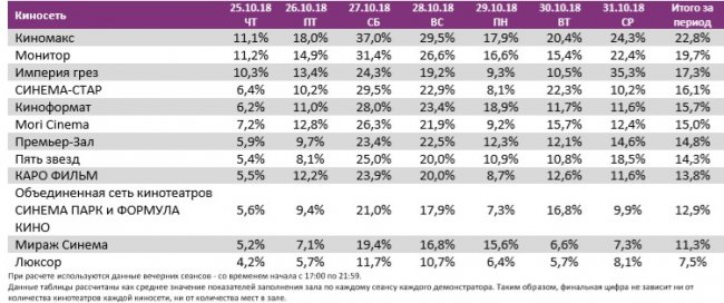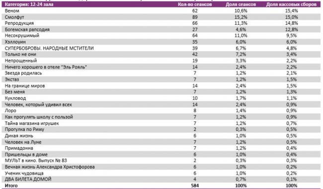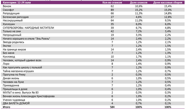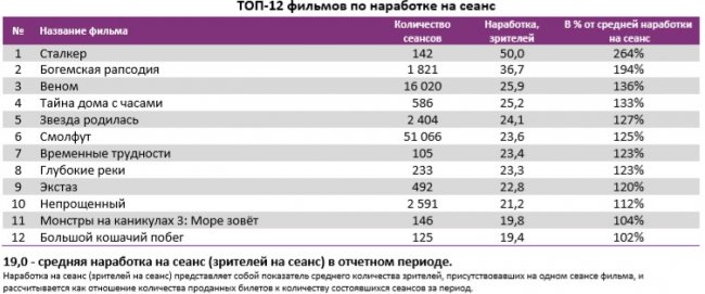 В топ-12 фильмов с лучшей наработкой – спецпоказы «Сталкера», превью-показы «Богемской рапсодии», а также лауреат «Кинотавра» - дебют «Глубокие реки».