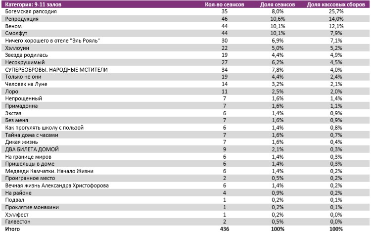 «Богемская рапсодия» на превью привлекала от 25 до 65 зрителей на сеанс в зависимости от количества залов в кинотеатре.