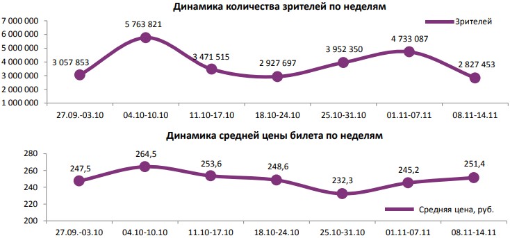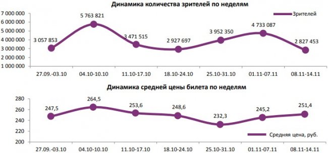 Как показывает индустриальная статистика с 8 по 14 ноября (неделя №45), на второй неделе ноября окончание каникул и праздников, а также скромный потенциал новинок сказались на посещаемости российских кинотеатров – 2,83 млн проданных билетов оказалось худшим результатом проката за последние полтора месяца.
