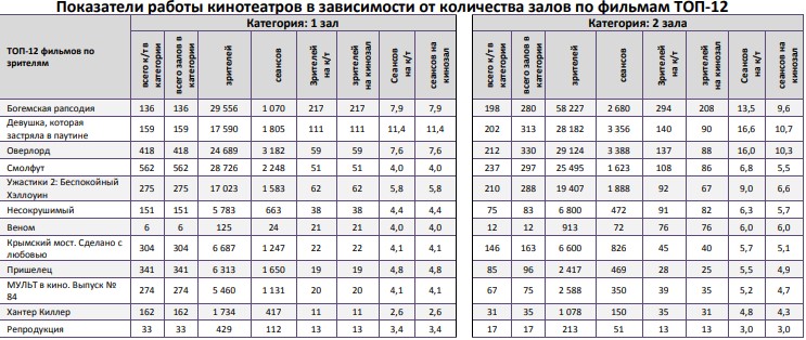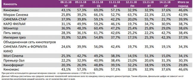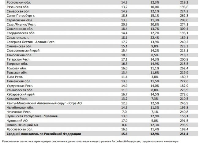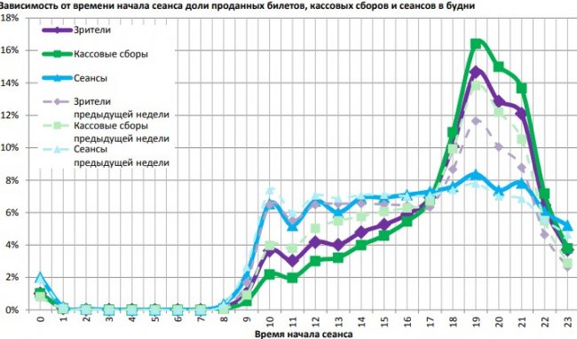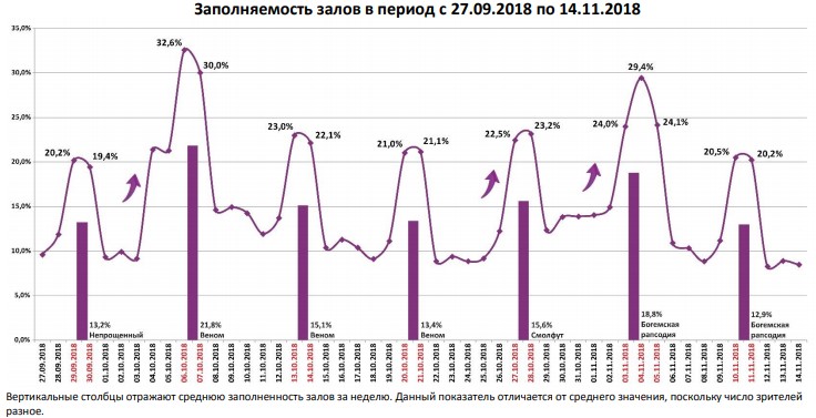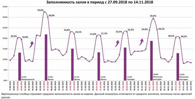 Средняя наработка на сеанс снизилась до 16 зрителей, а заполняемость – до 13%.