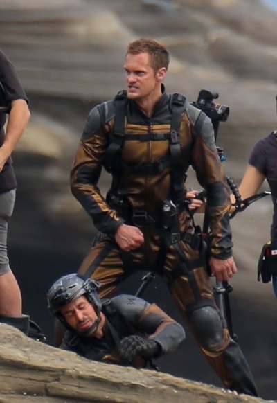 В Гонолулу (Гавайи) 42-летнего актера заметили на съемочной площадке в компании коллеги по фильму, Эйсы Гонсалес – звезды были одеты в костюмы агентов "Монарха" (организации, которую мы впервые увидели в "Годзилле" 2014 года), и Александр Скарсгард снимал сцену драки с совершенно зверским выражением лица: