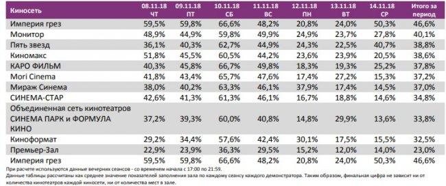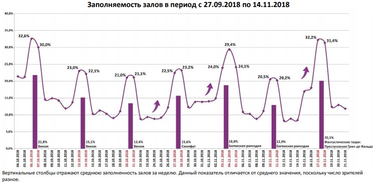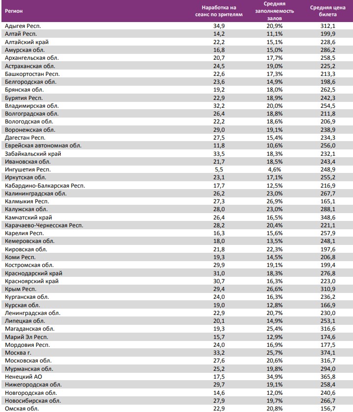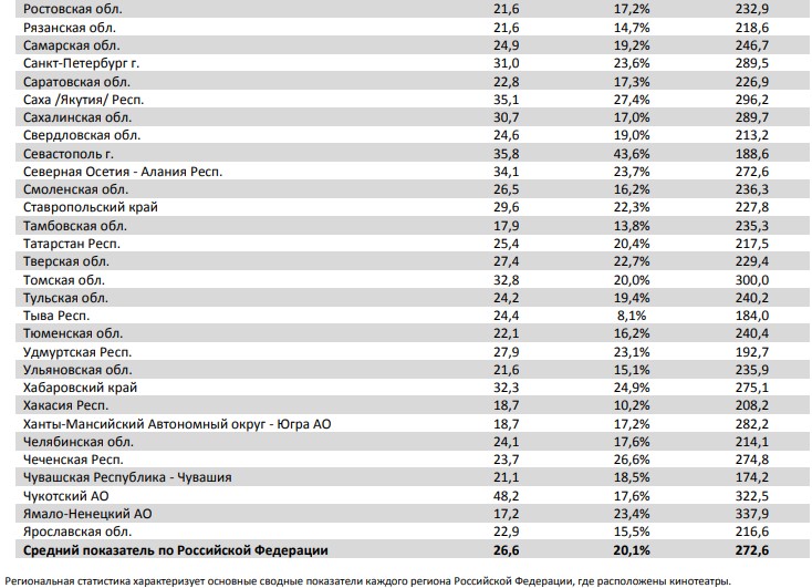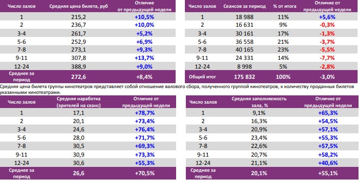 Средняя наработка на сеанс возросла до 27 зрителей, а заполняемость – до 20%.