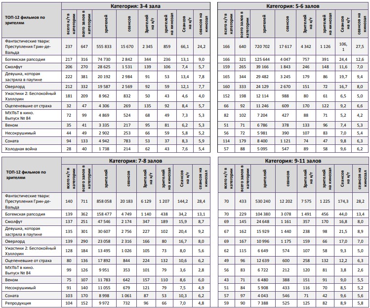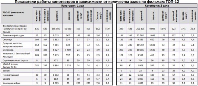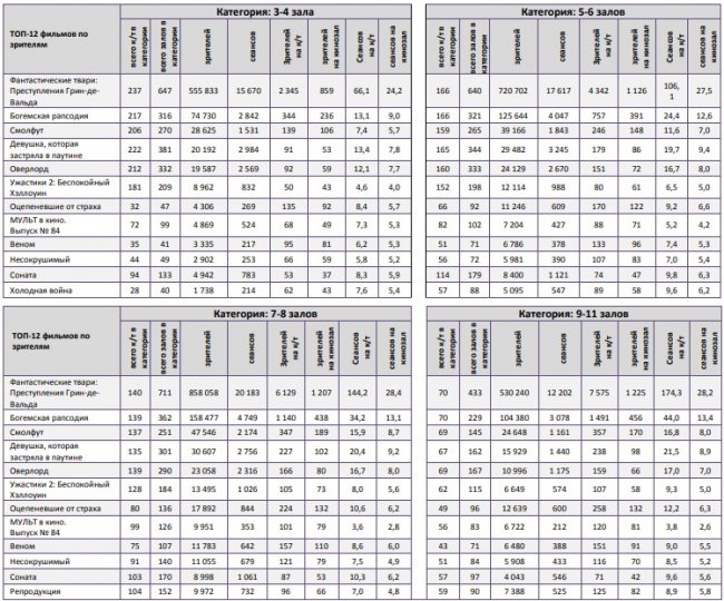 В одно- и двухзальниках «Фантастические твари 2» посмотрело свыше 500 тыс. человек.