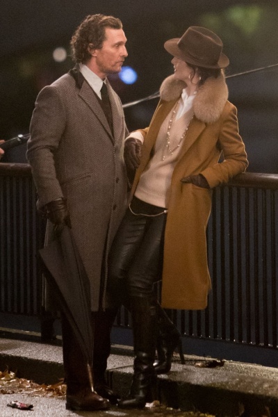 В Сеть просочились первые фото со съёмок криминальной ленты Гая Ричи "Парни-аристократы" с участием Мэттью МакКонахи и звезды "Аббатства Даунтон" Мишель Докери, которая заменила выбывшую из проекта Кейт Бекинсэйл.