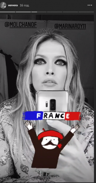 На селфи, сделанном исполнительницей, она запечатлена с насыщенным макияжем. Однако ее образ безоговорочно намекает на сходство со звездой французского кино Брижит Бордо.