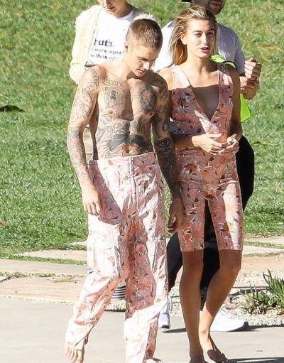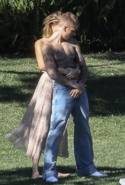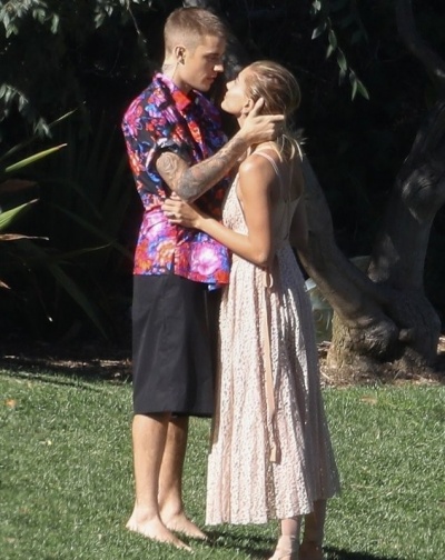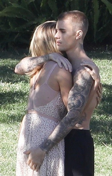 Снимала молодую семью знаменитая Энни Лейбовиц в Лос-Анджелесе. Скорее всего, съемку устроил журнал Vanity Fair. 24-летний Бибер и 22-летняя Хейли позировали в одинаковых нарядах, полуобнаженными и, как выглядело, были очень счастливыми.