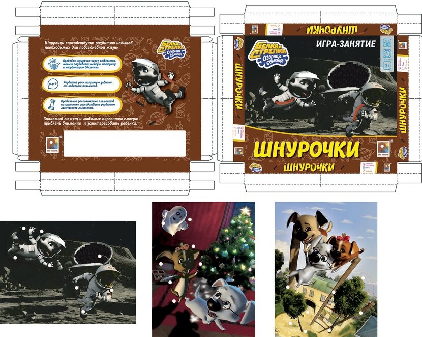 В декабре анимационная студия КиноАтис совместно с компанией Радуга выпускает четыре развивающие настольные игры для детей разного возраста с красочными изображениями анимационных персонажей популярной франшизы о собаках-космонавтах «Белка и Стрелка». Вместе с героями российских анимационных фильмов Белкой и Стрелкой, и их озорными щенками дети будут учиться правилам безопасности на дорогах, расширять кругозор и развивать мелкую моторику рук. Игры, также, как и другая продукция с изображениями Белки и Стрелки, в ненавязчивой игровой форме знакомят юное поколение с историей нашей страны и мотивируют к дальнейшему обучению. Это очень важная социальная миссия, которую студия КиноАтис реализует на протяжении многих лет существования.
