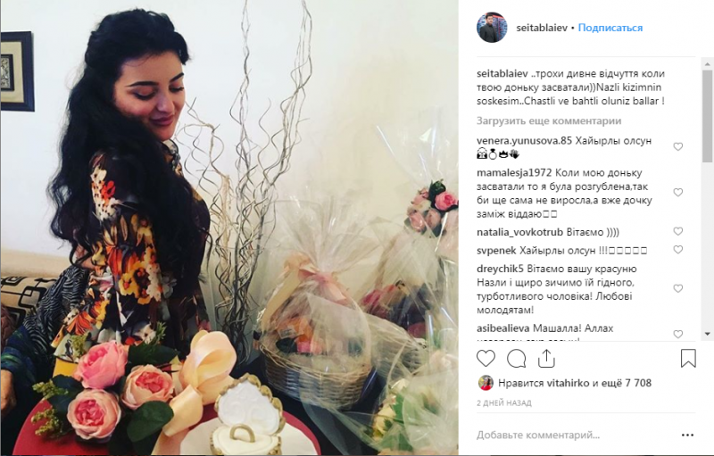 "Немного странное чувство, когда твою дочку засватали", - подписал публикацию Ахтем и продублировал надпись на крымскотатарском языке.