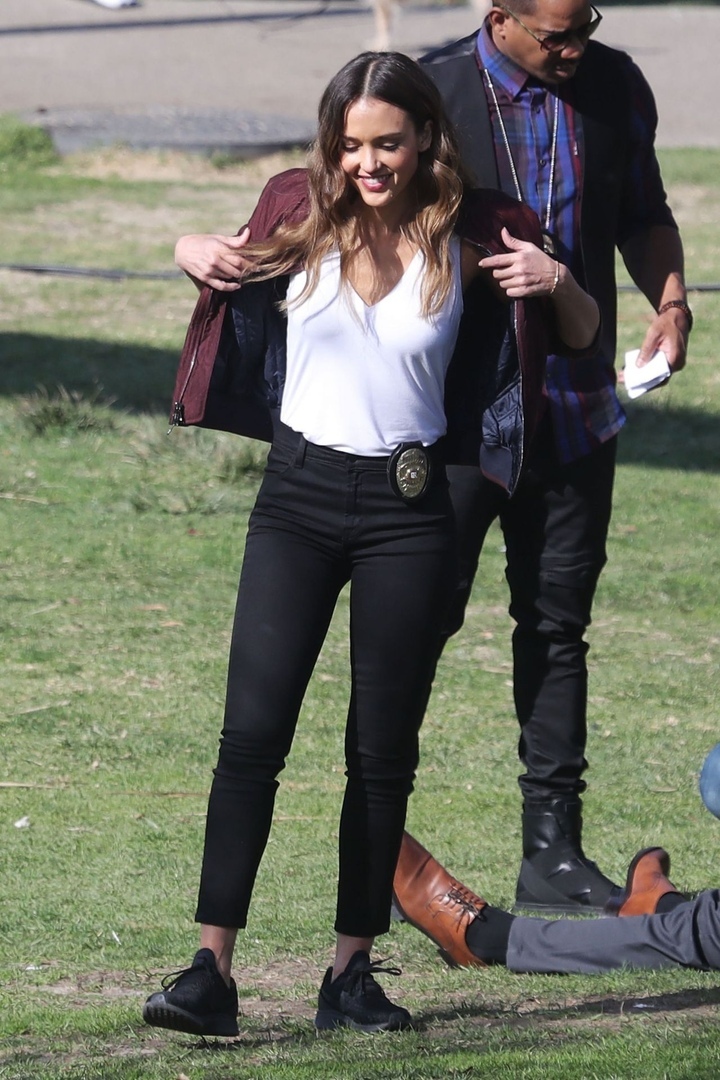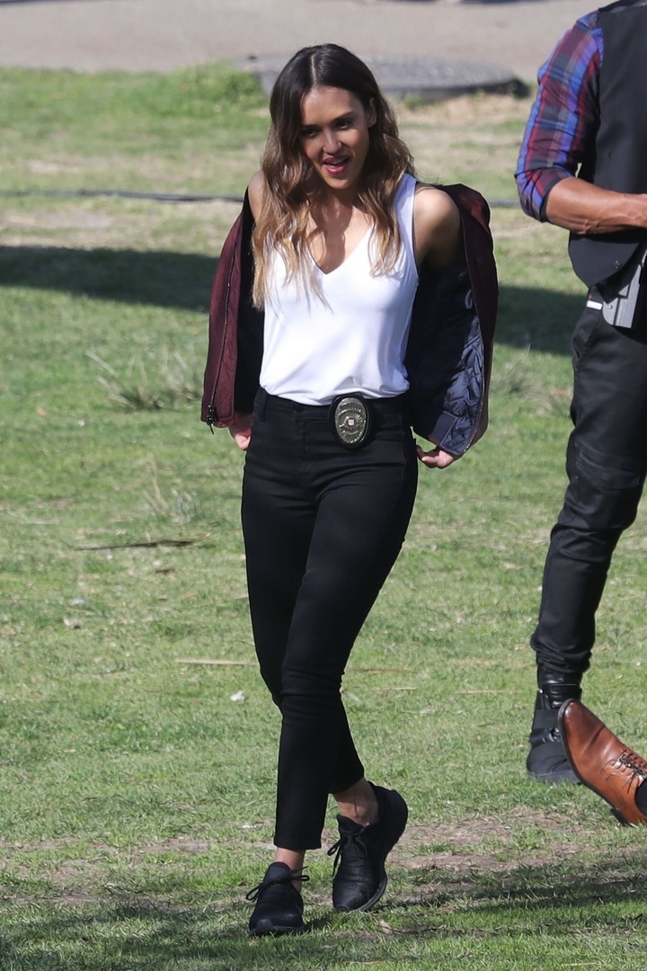 В Сеть просочились свежие фото со съёмок сериала «Лучшие в Лос-Анджелесе» - спин-оффа «Плохих парней» с Джессикой Альбой в главной роли.