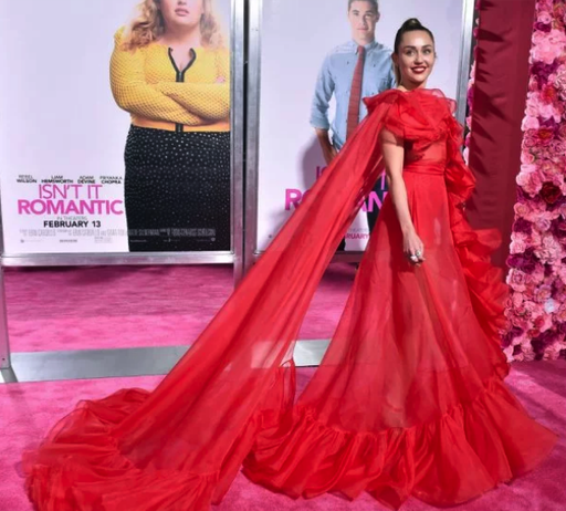 Американская поп-исполнительница Майли Сайрус стала приглашенной гостьей на премьере фильма "Разве это не романтично?". Хотя ее муж, актер Лиам Хемсворт, стал главным героем фильма, он не смог прийти на событие из-за проблем со здоровьем.