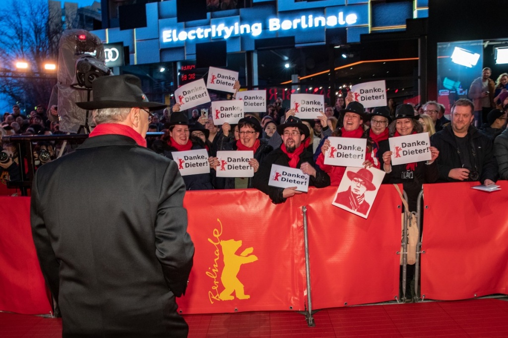 Это был ещё и вечер Дитера Косслика, закрывавшего свой последний Берлинале и оставляющего свой пост. Появившаяся на церемонии уполномоченная правительства Германии по вопросам культуры и СМИ Моника Грюттерс улыбалась фотографам, аккуратно придерживая табличку «Спасибо, Дитер». Такие же благодарственные таблички были в руках появляющихся среди публики гостей, одетых «под Косслика» (в шляпах и с красными шарфами). Слова благодарности говорила и ведущая церемонии Анке Энгельке, в зале зрителям показали и целый ролик об уходящем директоре, о «Мистере Берлинале» - это прозвище дали ему американские звезды, которых он активно привечал в фестивальных программах.