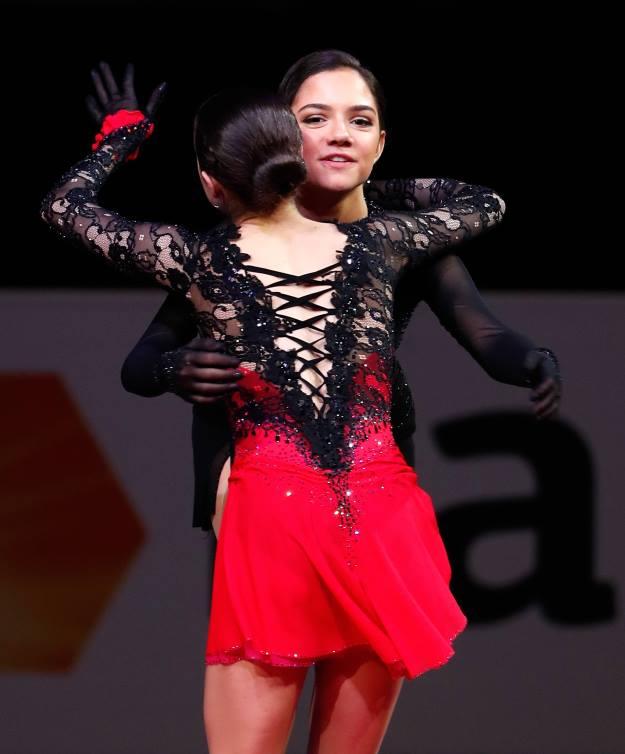 Алина Загитова и Евгения Медведева поздравили друг друга с медалями на чемпионате мира в Японии (Фото: Globallookpress.com)