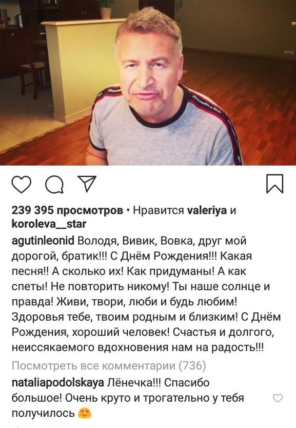 Наталья Подольская оценила поздравления Леонида Агутина. скриншот: instagram.com/agutinleonid/Отец Агутина рассказал о фирменном блюде сына и «тайной комнате» ВарумЖурналисты посетили загородный дом Николая Агутина, в котором часто собирается все музыкальное семейство.