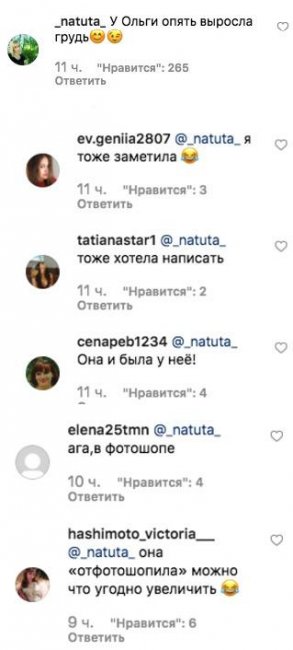 При этом не дремлют и хейтеры. Пикантное фото звезды многие подвергли критике. Одни считают, что Ольге не стоит выставлять на всеобщее обозрение подобные снимки, а другие уличили девушку в использовании фотошопа. Они заподозрили, что телеведущая увеличила себе бюст с помощью фоторедактора. «У Ольги опять грудь выросла», «И я заметила», «Фотошоп», «Агат, там все увеличить можно», — высказались злопыхатели.