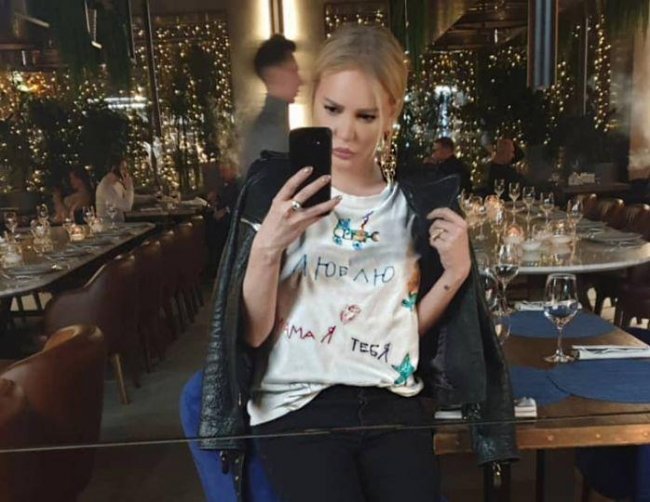 Телеведущая Маша Малиновская похвасталась поклонникам своей самой «дорогой и эксклюзивной» вещью — футболкой, которую для нее расписал ее семилетний сын Мирон. Звезда надела ее с черными штанами и кожаной курткой и в таком образе появилась в ресторане.