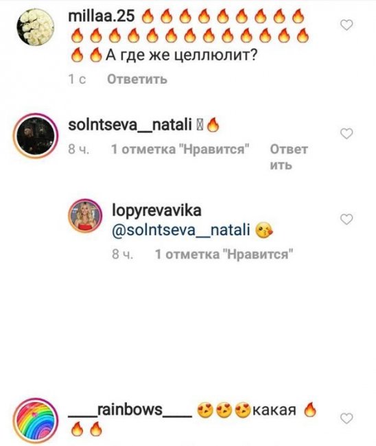 «А где же целлюлит?», «Очень стильная фотка», «Классная», «Шикарная Вика, ну какие все-таки ростовские девчата классные, супер!!», «Вика, ты бесподобна!!» – отреагировали на фото Виктории Лопыревой ее подписчики.