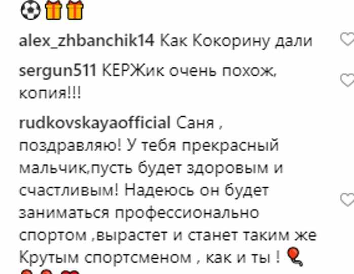 Любопытно, что в комментариях под снимком Кержакова отметилась продюсер Яна Рудковская, которая в прекрасных отношениях с футболистом. «Саня, поздравляю. У тебя прекрасный мальчик. Пусть будет здоровым и счастливым. Надеюсь, он будет заниматься профессионально спортом. Вырастет и станет таким же крутым спортсменом, как и ты», – написала Рудковская.
