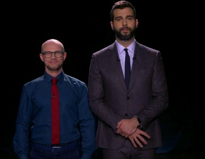 Сцена первая. Иван Ургант – прокурор, Дмитрий Хрусталев — свидетель Григорян, друг Кокорина и Мамаева.