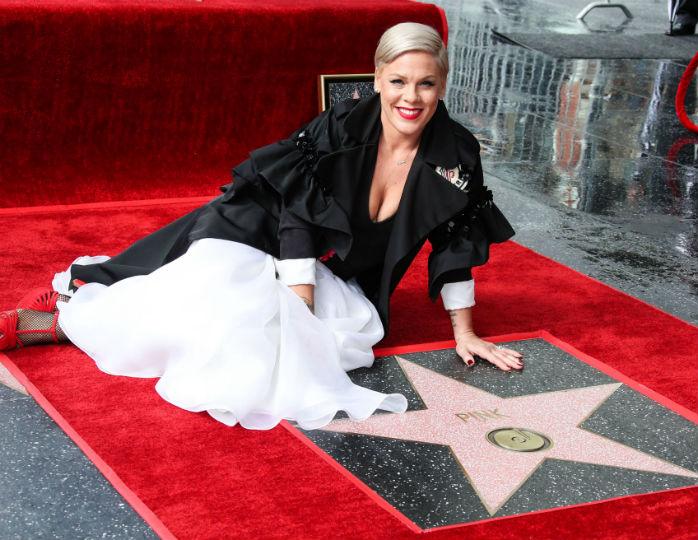 Звезда Пинк «зажглась» на Аллее славы в феврале. Обращаясь к собравшимся с речью певица призналась, что в начале своей сольной карьеры и подумать не могла, что ей удастся достичь таких высот. Поддержать на мероприятии артистку пришел ее супруг Кэри Харт и их дети — семилетняя Уилоу Сейдж и двухлетний Джеймсон Мун.