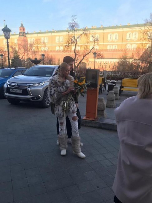 Балерина стала одной из первых, кто появился у стен Кремлевского дворца. Для Примадонны она приготовила букет подсолнухов.