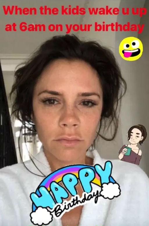 Утро праздничного дня наступило для Виктории неожиданным образом. В шесть часов утра ее разбудили дети, которым не терпелось поздравить маму. Супруг Дэвид Бекхэм разместил в Instagram снимок, на котором популярный дизайнер позирует перед зеркалом ванной комнаты в белом домашнем халате и немного заспанным выражением лица.