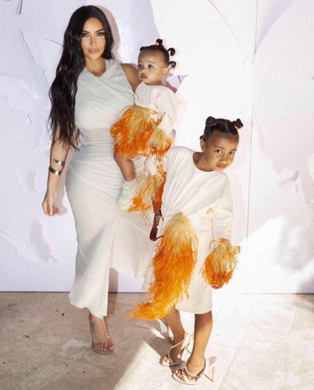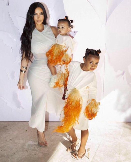 На одном из кадров Ким позирует вместе с дочерьми Норт и Чикаго, и на первый взгляд он кажется идеальным, однако поклонники светской львицы рассмотрели, что старшая наследница стоит на слишком высоких для своего возраста каблуках.